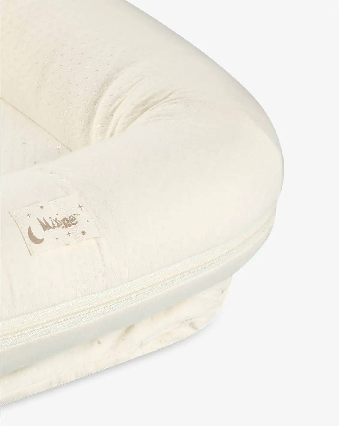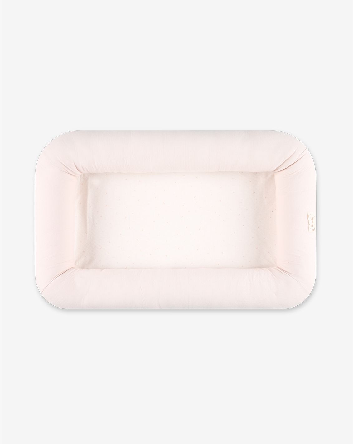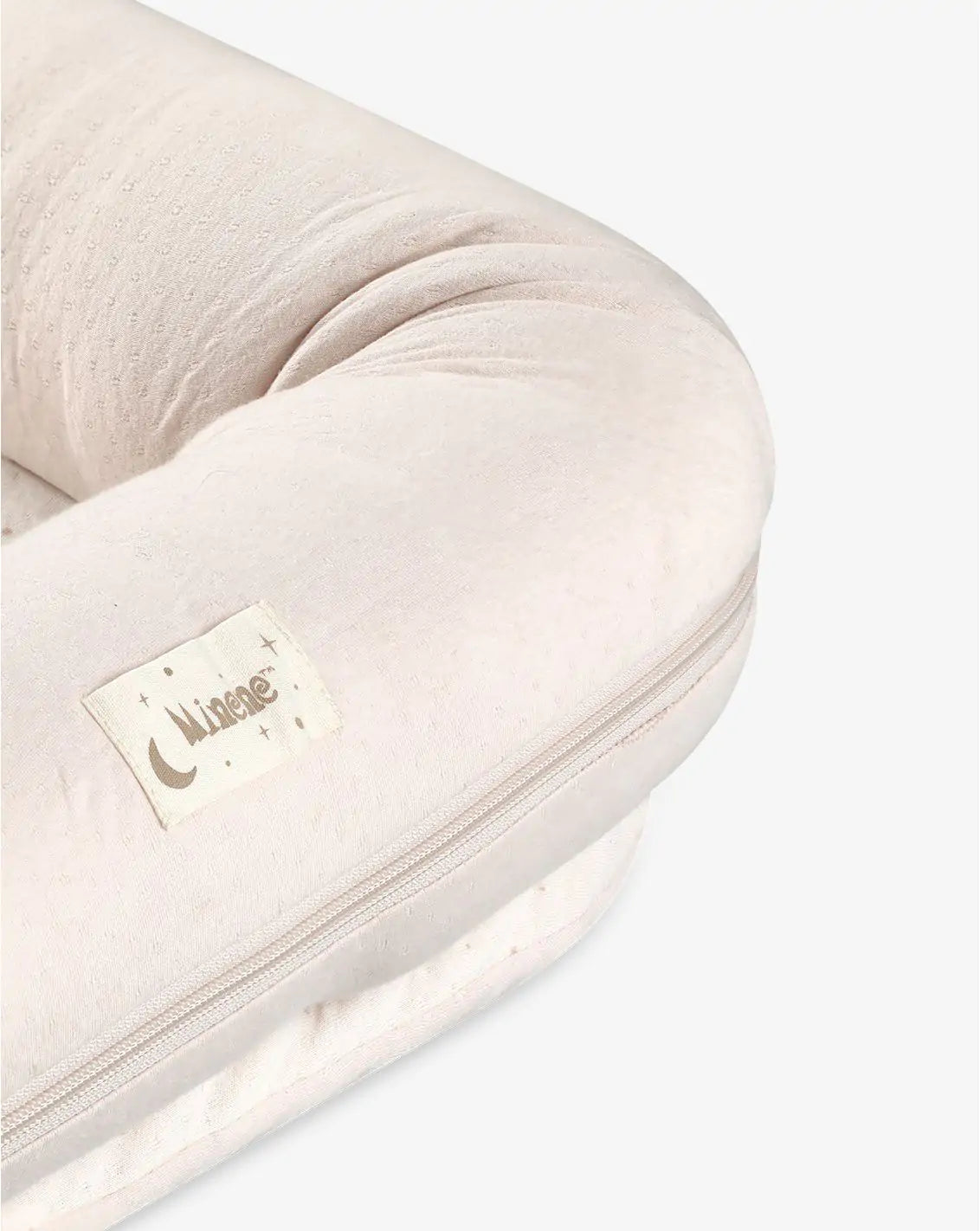 The Nest is made of a soft and pleasant outer fabric cover with a delicate and sweet pointel pattern. The mattress is made of hard fiber filling and wrapped in airy three-dimensional mesh fabric, the sides of the nest are raised to create peripheral protection and are also made of breathable three-dimensional mesh. Using the zippers, you can remove the side filling and the mattress and allow a thorough cleaning of the cover. * The Baby Nest must always be placed on a flat surface and must not be picked up when the baby is inside. The product must only be used with adult supervision. The Baby Nest is not suitable for night sleep. It is recommended for a short rest time, allows the parents to be near the baby during the rest. Machine wash according to manufacturer's instructions. Remove the fillings before washing and wash only the covers. Recommended age for use: 0-6 months and depending on the baby's dimensions. Dimensions: 52 cm X 85 cm X 14 cm (external dimensions) , mattress thickness 2 cm, fabric composition - outer 96% cotton + 4% elastane, lining 100% polyester mesh fabric, filling 100% polyester