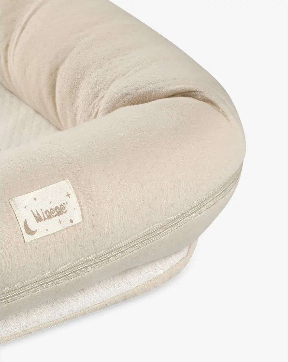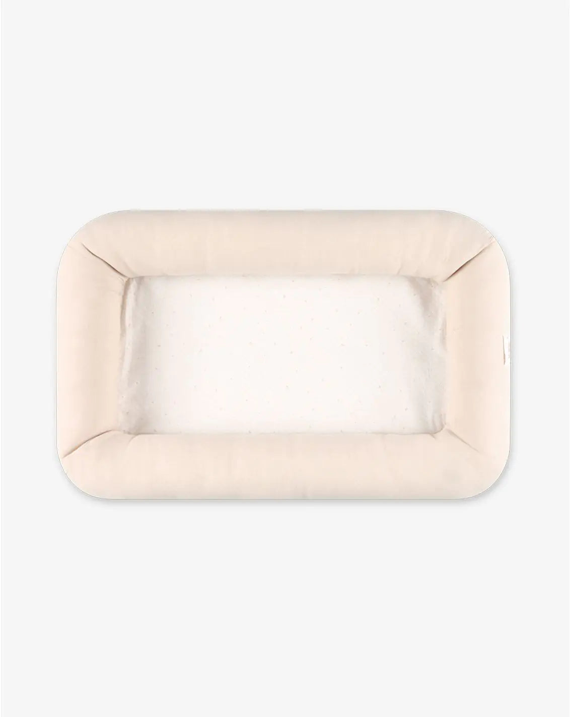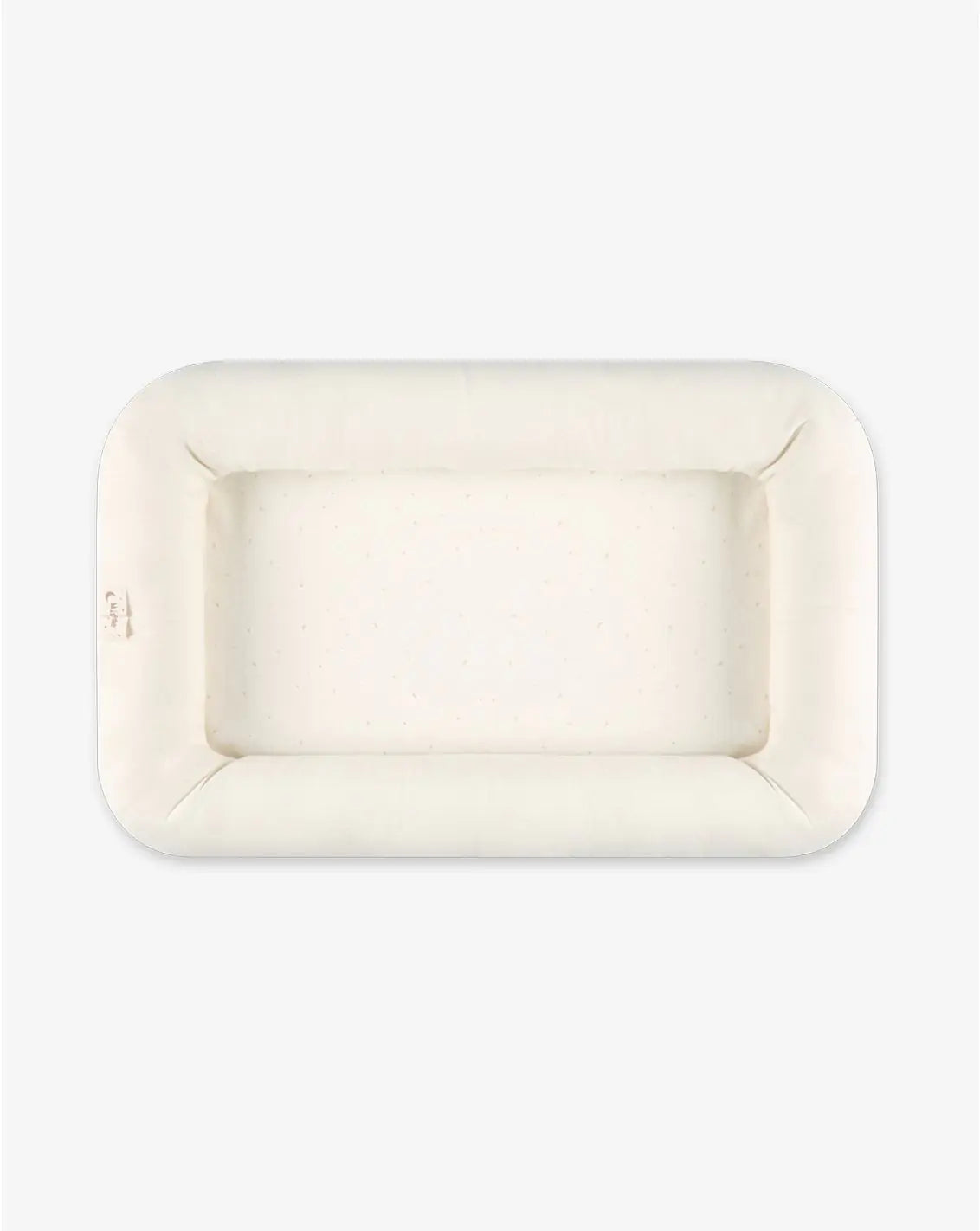 The Nest is made of a soft and pleasant outer fabric cover with a delicate and sweet pointel pattern. The mattress is made of hard fiber filling and wrapped in airy three-dimensional mesh fabric, the sides of the nest are raised to create peripheral protection and are also made of breathable three-dimensional mesh. Using the zippers, you can remove the side filling and the mattress and allow a thorough cleaning of the cover. * The Baby Nest must always be placed on a flat surface and must not be picked up when the baby is inside. The product must only be used with adult supervision. The Baby Nest is not suitable for night sleep. It is recommended for a short rest time, allows the parents to be near the baby during the rest. Machine wash according to manufacturer's instructions. Remove the fillings before washing and wash only the covers. Recommended age for use: 0-6 months and depending on the baby's dimensions. Dimensions: 52 cm X 85 cm X 14 cm (external dimensions) , mattress thickness 2 cm, fabric composition - outer 96% cotton + 4% elastane, lining 100% polyester mesh fabric, filling 100% polyester