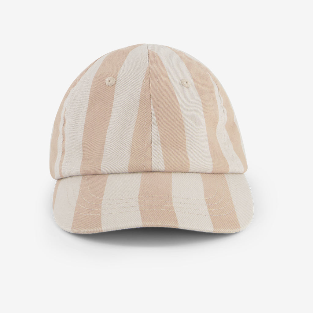 Baby visor hat comes in sizes 6-12 and up to 18-24 months. Fabric composition: 100% cotton. Washing instructions according to the label.