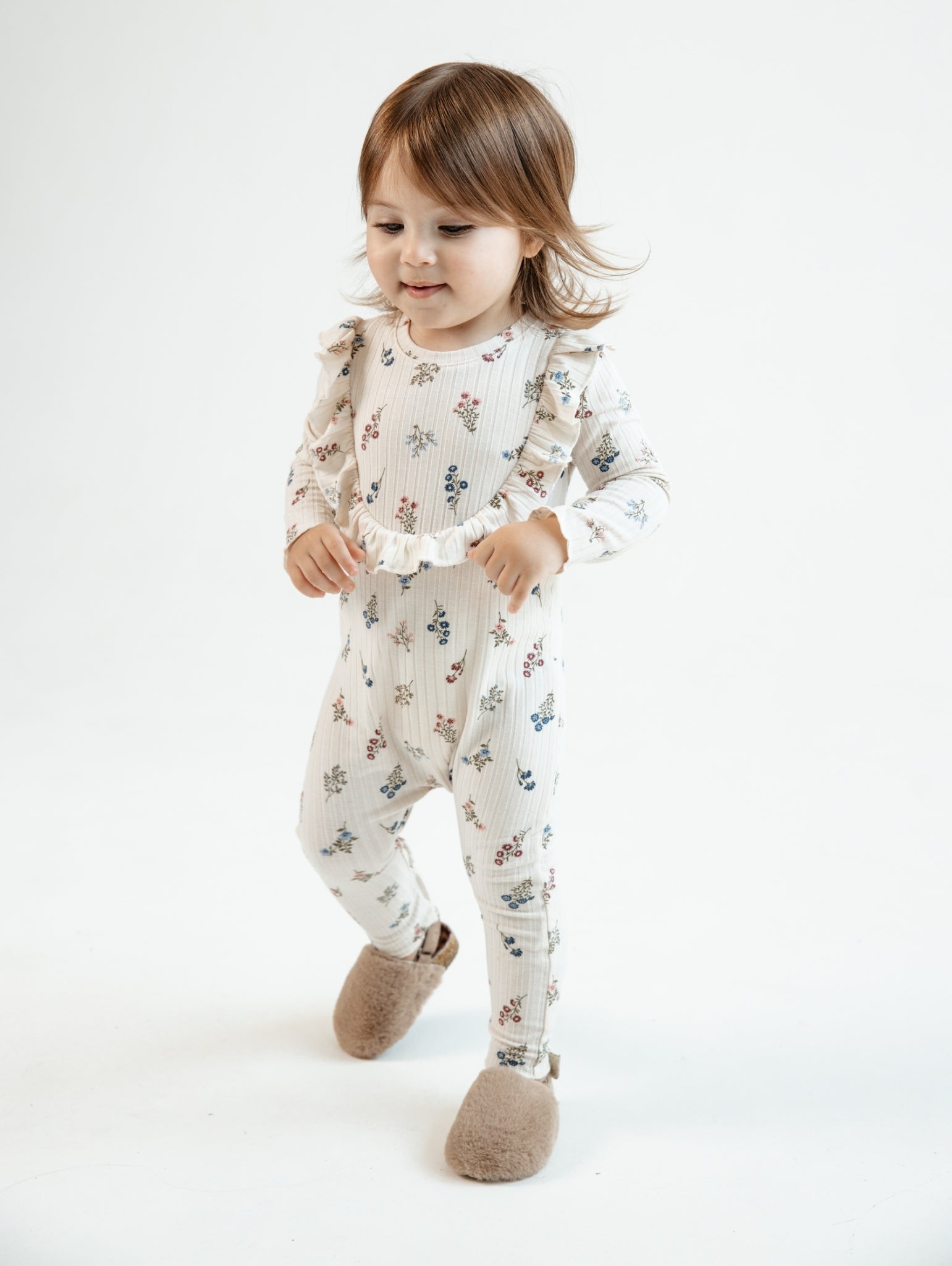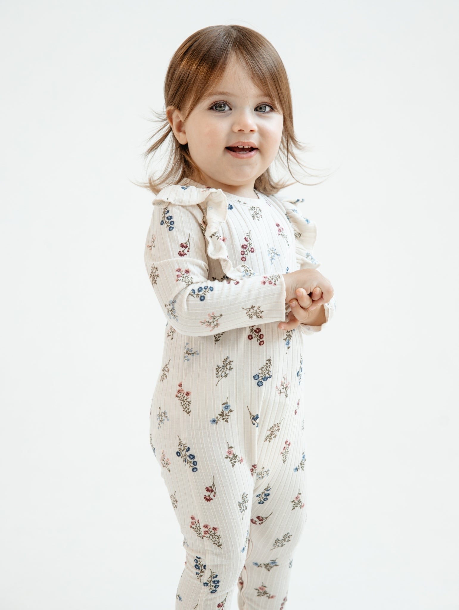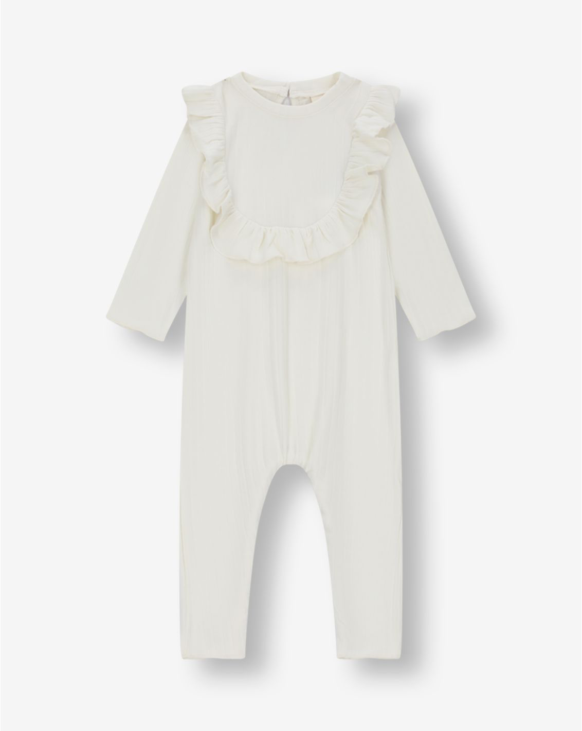 The entire collection is made of ribbed fabric combined with high-quality textural cotton for maximum comfort. Rib overall with muslin decoration, long sleeves, ticking closure. Comes in sizes 0-3 months up to 18-24. Washing instructions: Wash the garment according to the washing instructions indicated on the label.