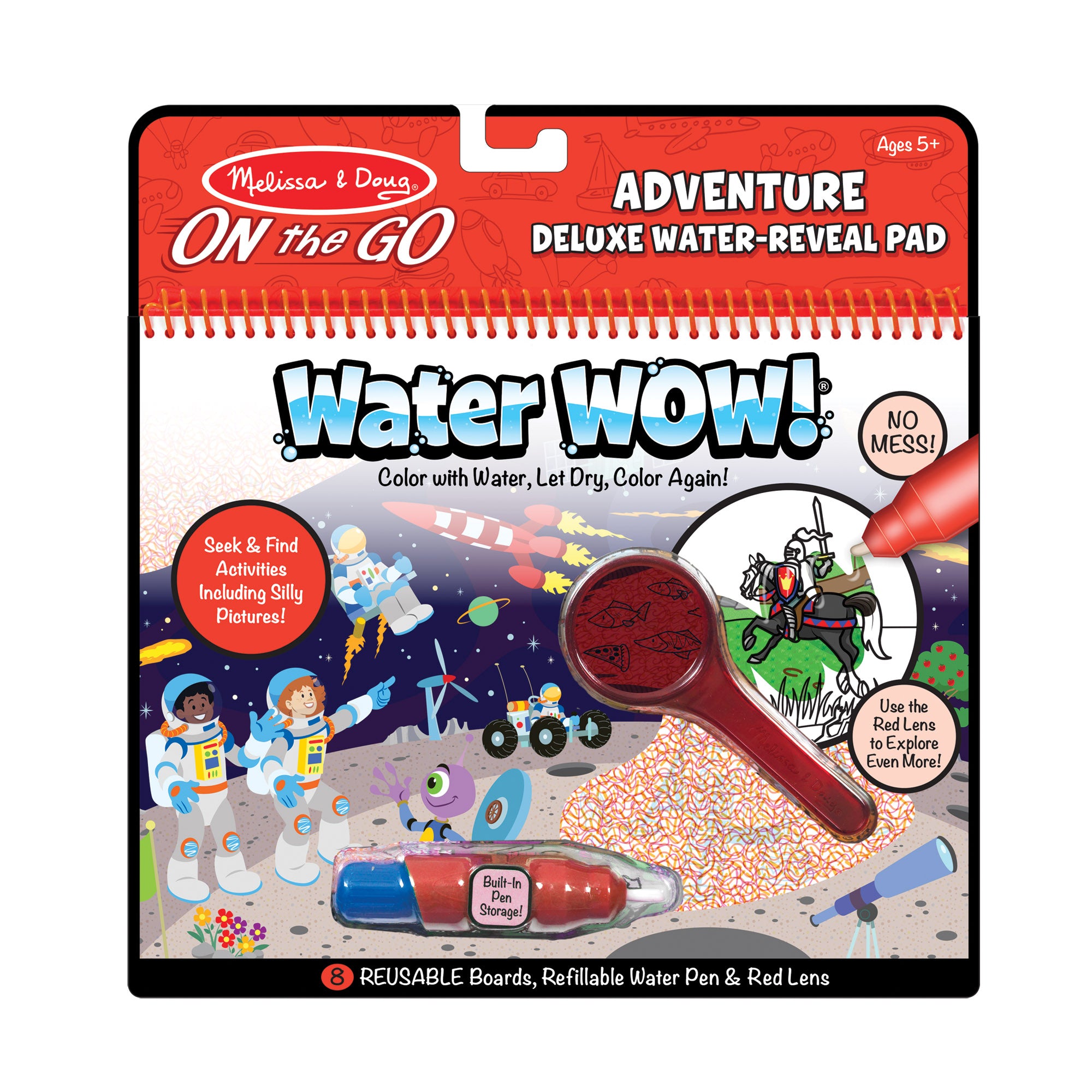 No mess painting for kids! This exciting paint-with-water and seek and find activity book includes eight reusable pages, a refillable water pen, and red lens. Simply use the pen to color in each adventure scene details and vibrant color appear with every stroke! Let the page dry to erase the pictures and color it in again and again. Reveal hidden pictures with the water pen, then use the red lens to explore even more in the detailed scenes! The chunky sized water pen and red lens are easy for kids to hold and store neatly right in the front cover, making this Deluxe Water WOW! an ideal travel activity book and travel toy for kids!