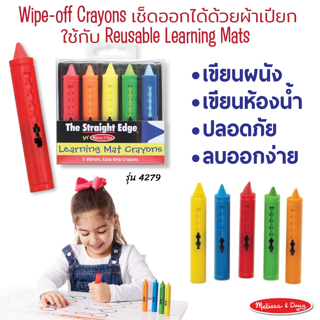 ดีไซน์ไว้ให้ใช้กับสีเทียนชนิดที่ลบออกได้ (ไม่ใช่สีเทียนทั่วไป) ของ Melissa and Doug จะเป็น Item #4279 Wipe-off Crayons