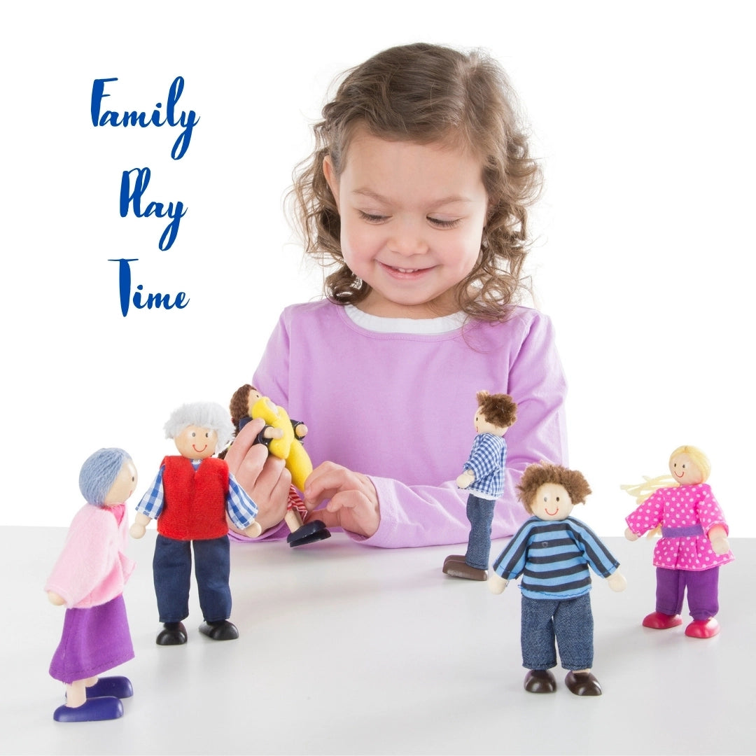 This beautiful wooden doll family set is perfect for populating play sets or playing family in any imaginative setting! The seven pose-able people have flexible limbs, so children can bend their bodies and change their positions as they enjoy limitless pretend-play possibilities.