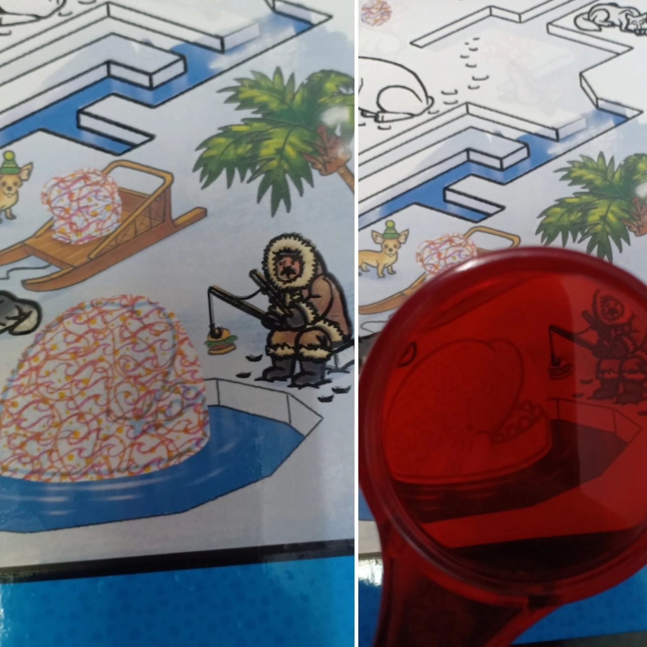- Reveal hidden images then use red lens to seek and find even more